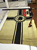 Germania terzo reich Bandiera rarissima completa di aste e puntale e nastri d'onoreficenza,veramente meravigliosa appena tolta dall'imballo che la conteneva quest'ultima era dell organizazzione sthalem bund prima dell avvento di hitler al potere è stampata in ambo i lati , la misura dell asta compreso puntale 1.60 mt, solo puntale 20 cm , la bandiera misura 1.00mt x1.50mt, Stahlhelm, bund der frontsoldaten in Italiano Stahlhelm, Bund der Frontsoldaten (in tedesco: "Elmetti d'acciaio, Lega dei soldati del fronte") o più brevemente Der Stahlhelm, fu un'organizzazione paramilitare nata in Germania al termine della Prima guerra mondiale durante la Repubblica di Weimar. Dopo il 1926 l'organizzazione subì una evoluzione che la portò da movimento paramilitare (Freikorp) a movimento politico. Dopo la vittoria del partito nazionalsocialista alle elezioni del 1932 e la nomina di Hitler a Cancelliere nel gennaio 1933, l'importanza politica dell'organizzazione venne sempre meno, e tra il 1934 e il 1935 gli Elmetti d'acciaio confluirono nelle Sturmabteilung e sciolte definitivamente, con decreto di Adolf Hitler, il 7 novembre 1935.