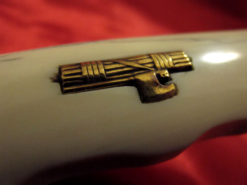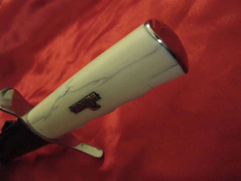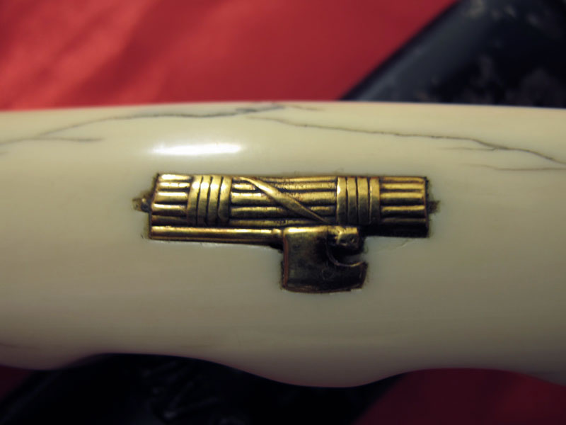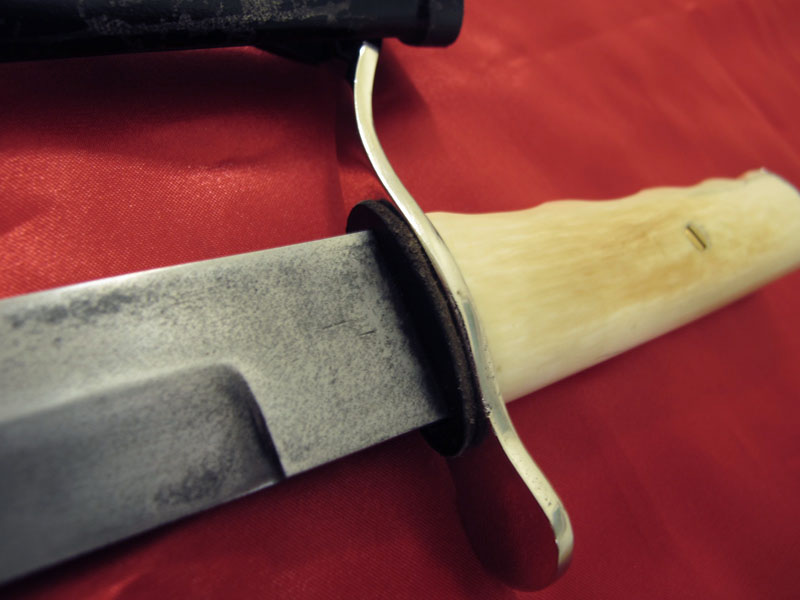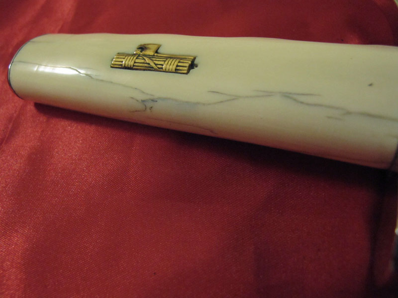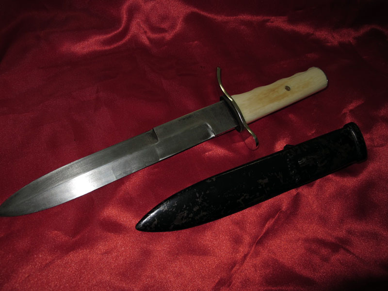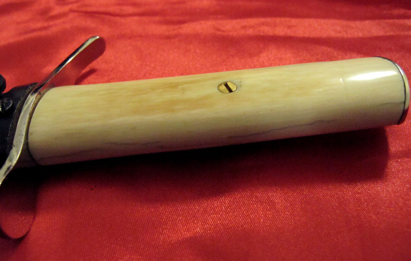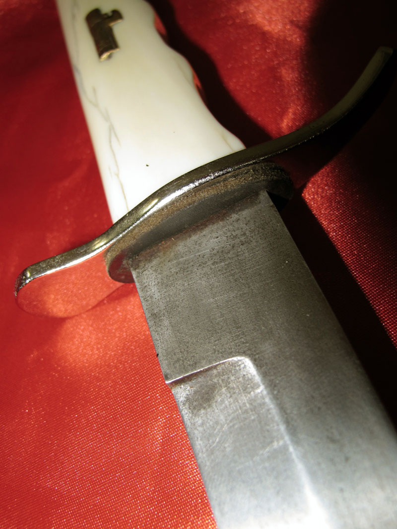 Rarissimo e ormai quasi introvabile pugnale da marcia della Milizia Volontaria Sicurezza Nazionale ( modello con impugnatura bianca da Generale) l'impugnatura č realizzata in pregiato avorio ,con al centro l'emblema ottonato del fascio littorio , La lama, e' a un filo e due terzi circa, a sezione di losanga con fili leggermente divergenti che le danno all'ultimo terzo una larghezza superiore a quella del tallone. Il pugnale, in ottime condizioni di conservazione, ha tuttavia un aspetto "vissuto" essendo stato sicuramente portato a lungo.