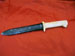 Rarissimo e ormai quasi introvabile pugnale battaglione S.Marco ( modello con impugnatura bianca da Generale) l'impugnatura č realizzata in pregiato avorio ,con al centro l'emblema incavato del fascio littorio ,e la parte terminale a forma ti testa di leone. La lama,porta inciso il motto patriottico e la firma di Mussolini e' a un filo e due terzi circa, a sezione di losanga con fili leggermente divergenti che le danno all'ultimo terzo una larghezza superiore a quella del tallone. Il pugnale, in ottime condizioni di conservazione, ha tuttavia un aspetto "vissuto" essendo stato sicuramente portato a lungo.