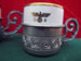 Lotto riguardante un servizio da caffè ,realizzato in peltro e porcellana bianca ,il lotto è composto da 2 tazzine e una zuccheriera ,la lavorazione del Peltro porta degli intarsi che richiama lo style bavarese,l'intero servizio è decorato sui bordi con oro zecchino come l'emblema D.R. che raffigura l'aquila nazista posizionata al centro di ogni porcellana. ( D.R. )Primo simbolo ufficiale dello Stato nazista con il DR lettera che è stata montata sulle vetture ferroviarie (e in molti casi, sui ponti Autobahn). DR originariamente stava per Deutsches Reich , ma anche per Deutsche Reichsbahn